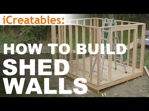 Shed Walls }}- Chris from http://www.icreatables.com/sheds/sheds-plans.com teaches you how to build walls. This video shows you how to use wall studs and top and bottom ...